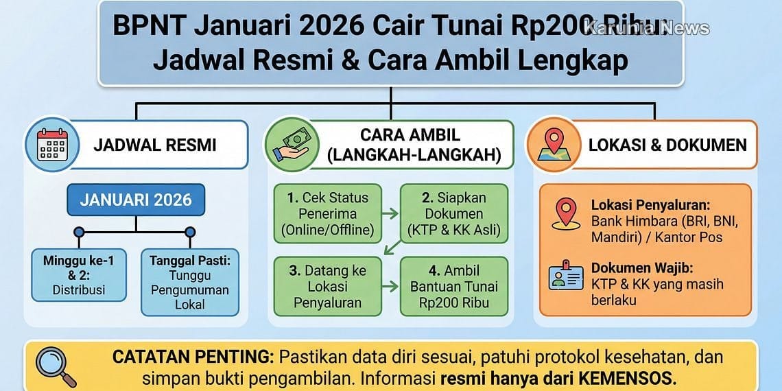 Memasuki awal tahun 2026, kabar gembira datang bagi jutaan Keluarga Penerima Manfaat (KPM) di seluruh Indonesia. Bantuan Pangan Non Tunai atau BPNT periode Januari 2026 sudah dipastikan akan segera dicairkan dengan nominal bantuan tunai sebesar Rp200.000 per keluarga. Program bantuan sosial yang dikelola Kementerian Sosial RI ini menjadi salah satu penopang utama kehidupan masyarakat prasejahtera dalam memenuhi kebutuhan pangan sehari-hari. Pencairan BPNT awal tahun ini sangat dinantikan karena bertepatan dengan momentum tahun baru yang biasanya memerlukan pengeluaran ekstra untuk kebutuhan rumah tangga.